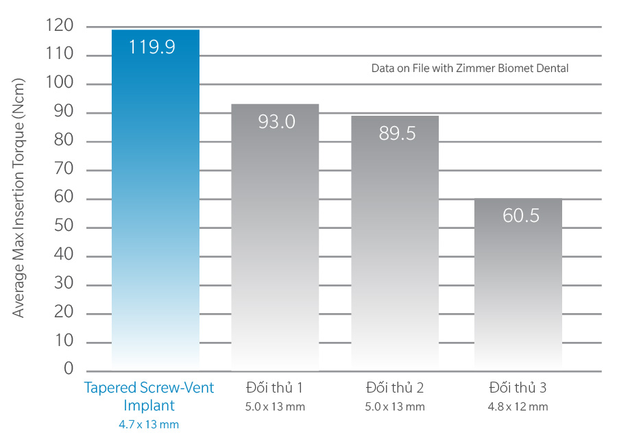 - Tapered Scew-Vent Implants được tạo nên từ thành phần hợp kim Titanium cấp độ 5 vì sự tương thích sinh học và độ cứng tốt.