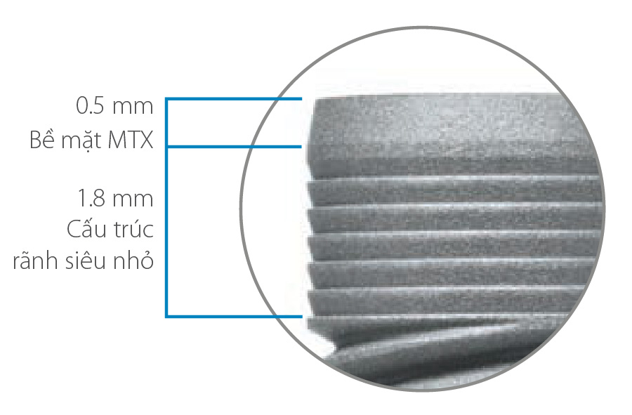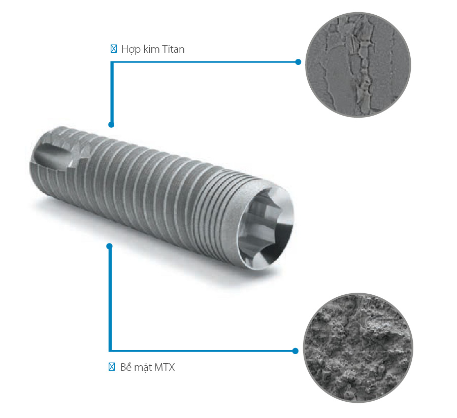 - Thiết kế ren triple được ứng dụng nhằm tăng sự tiếp xúc xương và implant.